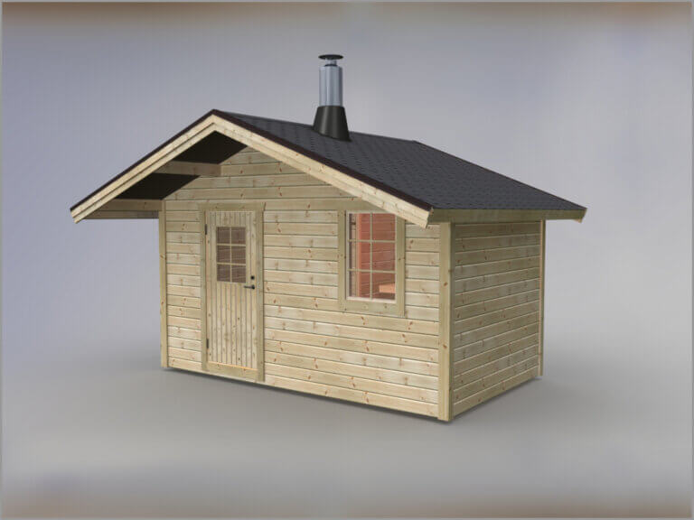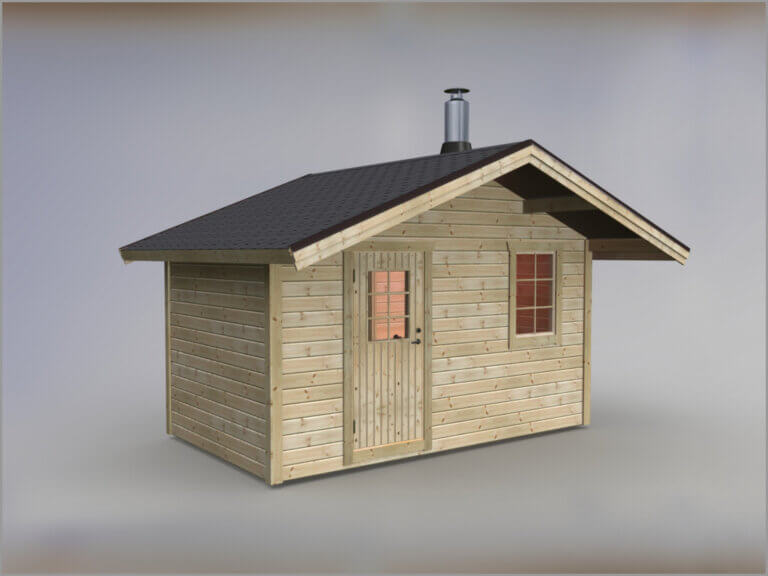 Bergön 10 m2 rymmer upp till sex personer, med en nedre lave i vinkel . Bergön är en klassisk vedeldad bastustuga, Friggebodsbastu i traditionell stil. Gott om plats för att tvätta av sig i bastun och med en omklädning/relax som är 5 m2. Bergön har en meters utstick på taket som standard samt en dörr och ett fönster.
