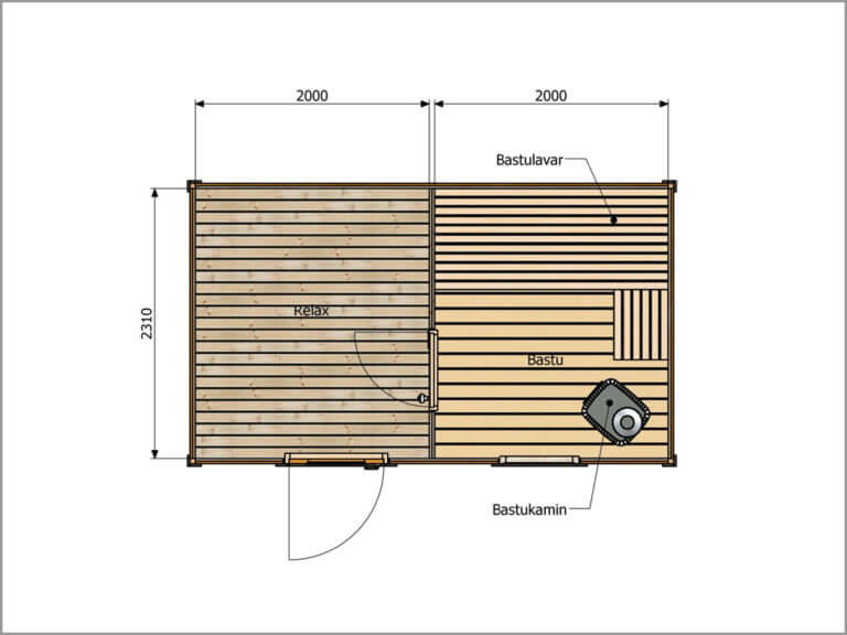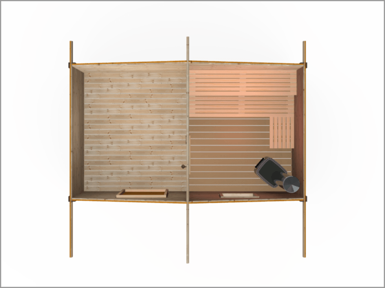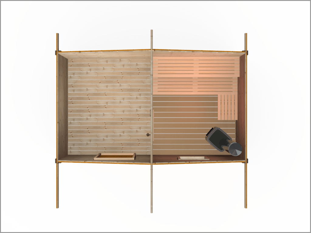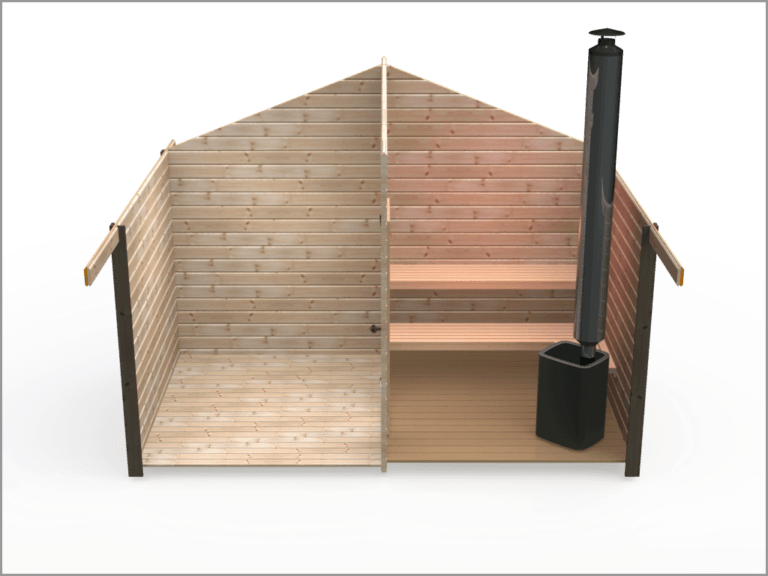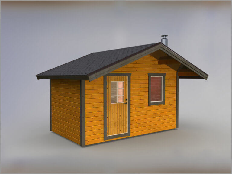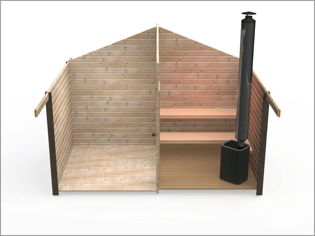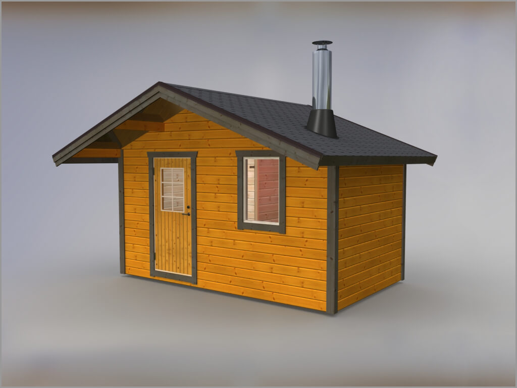 Sandskär bastustuga 10 m2 rymmer upp till fem personer. Sandskär är en klassisk Friggebodsbastu i traditionell stil. Gott om plats för att tvätta av sig i bastun och med en omklädning/relax som är 5 m2. Sandskär har en meter utstick på taket som standard samt en dörr och ett fönster.